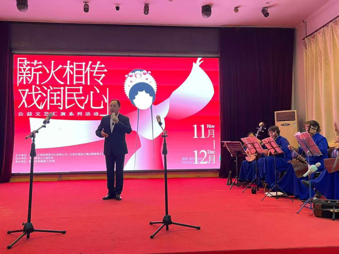 捐赠仪式后,由石家庄文旅投集团文化体育公司、石家庄摇滚之城品牌管理公司联合主办,河北省爱心公益协会协办,赵立华戏剧家工作室承办的“薪火相传·戏润民心”戏曲演出,也在充满爱心的礼堂拉开了大幕。