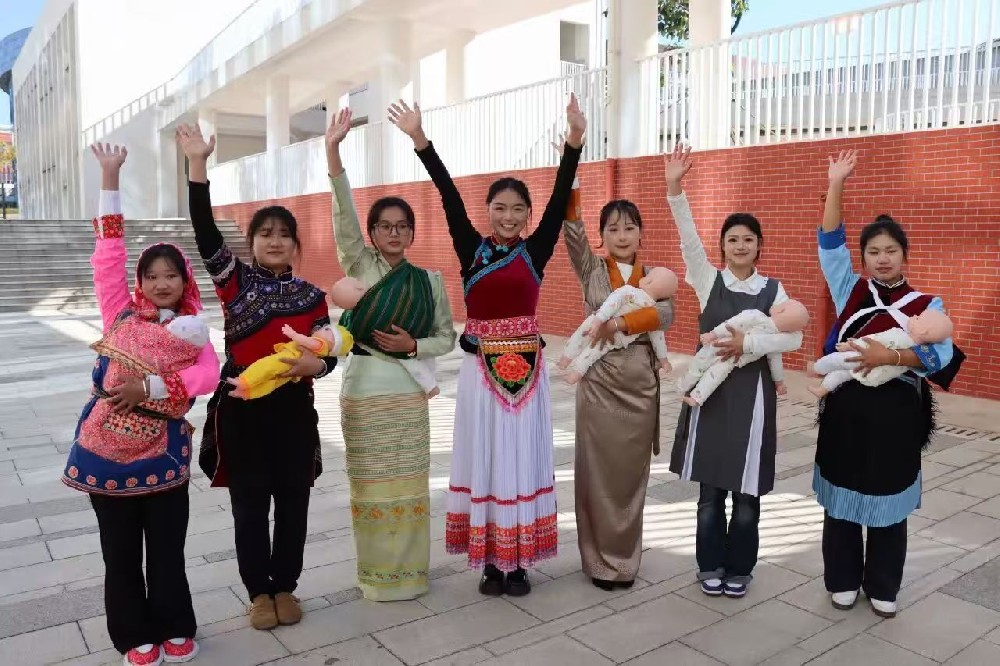 在昆明幼儿师范高等专科学校早期教育学院的实训楼里,学生们在“三胎家庭的温馨秘诀”“乡村早教”等课题中探索,在AI辅助下严谨练习婴幼儿照护全流程。背起娃娃用京剧加持演示急救技能、身着专业服装开展实操、通过虚拟仿真设备模拟托育环节……在功能齐全的实训环境中,他们沉浸式锤炼着“幼有所育”的真本领,这些场景真实发生,温暖而专业。