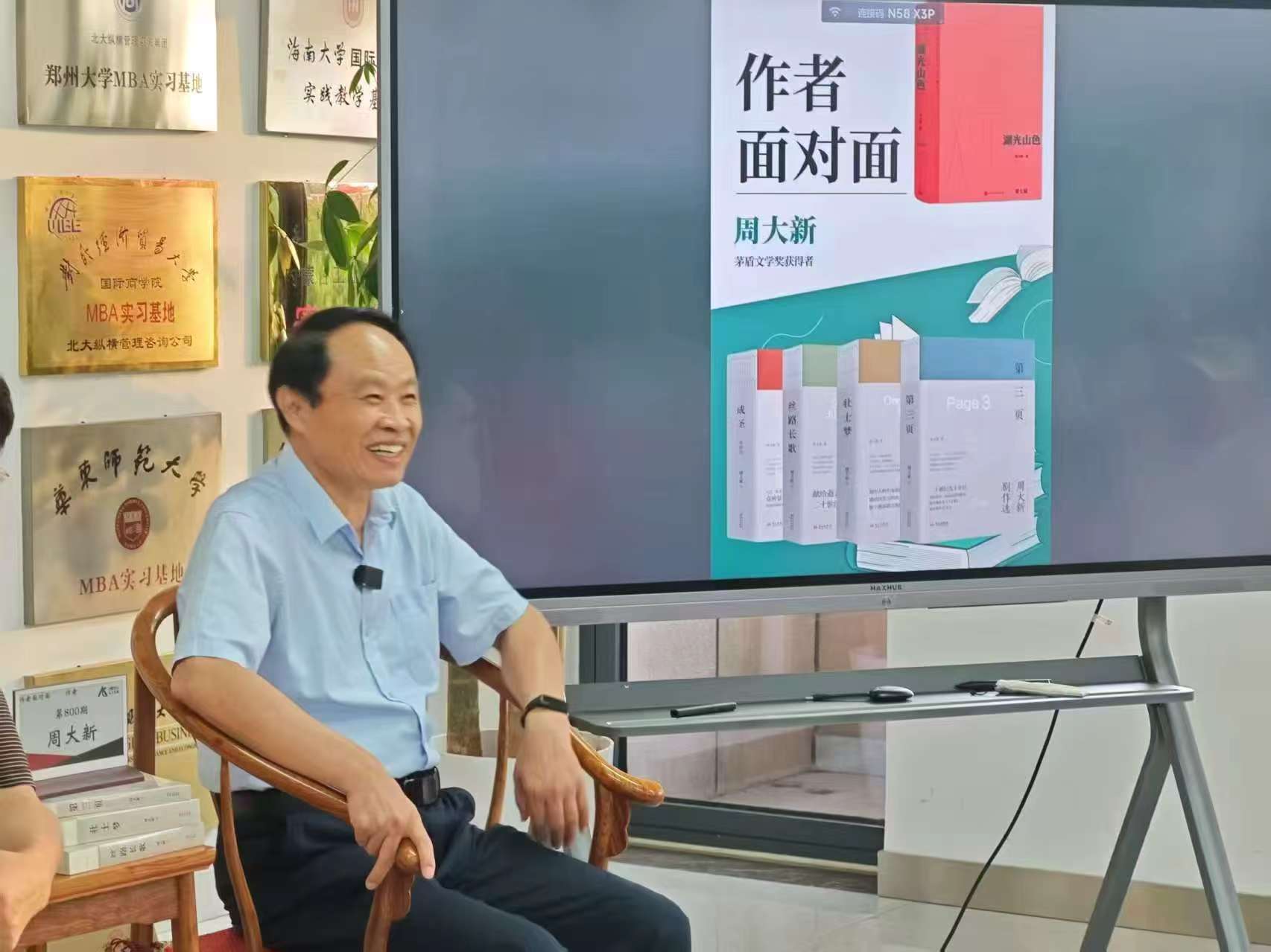 周大新老师简介:周大新,1952年生于河南邓州,1970年从军,1979年开始发表作品。著有长篇小说《走出盆地》《湖光山色》《安魂》《天黑得很慢》《洛城花落》等。曾获全国优秀短篇小说奖、茅盾文学奖、中国出版政府奖、人民文学奖、冯牧文学奖、老舍散文奖等