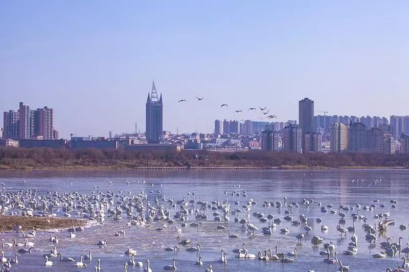 优良的生态环境,让三门峡成为白天鹅越冬的天堂。每年10月至次年3月,上万只大天鹅从西伯利亚远道而来,在天鹅湖国家城市湿地公园、黄河湿地等区域栖息嬉戏。它们或凌波漫步、或振翅高飞、或引颈长鸣,洁白的身影与碧波黄河、黄土塬交相辉映,构成一幅人与自然和谐共生的绝美画卷。如今,三门峡的天鹅栖息地不断拓展,鸟类种类持续增加,生态底色愈发鲜亮,“天鹅之城”的名片愈发响亮。