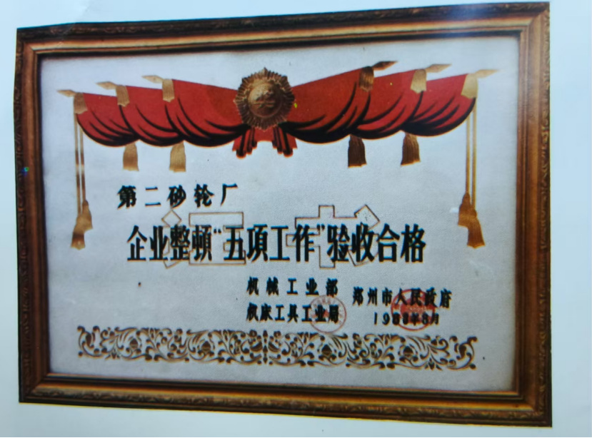不久,二砂正式收到三家上级单位联合盖章颁发的《五项整顿合格证书》,成为全国机床工具行业、磨料磨具行业首家通过国家级企业整顿验收的企业。望着这份沉甸甸的、盖着鲜红大印的证书,回想这一年多的奔波、熬夜与坚守,心里满是自豪与欣慰,所有的辛苦与委屈都化作了满满的成就感。