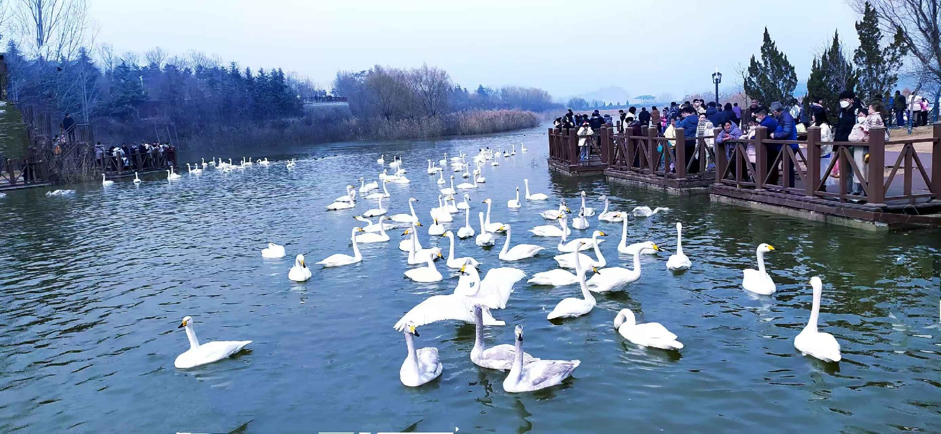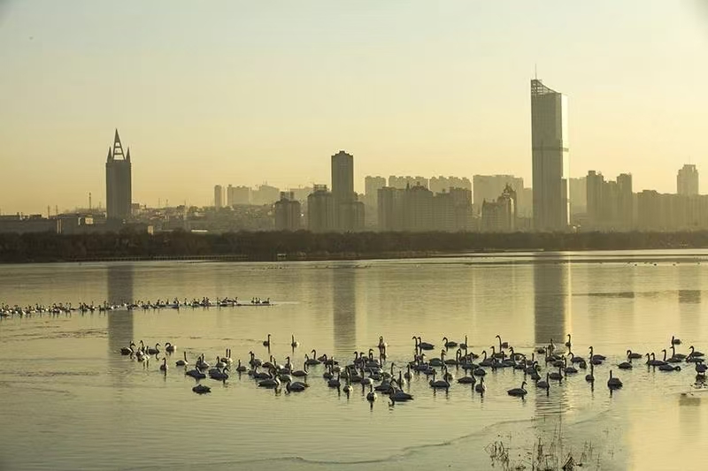 优良的生态环境,让三门峡成为白天鹅越冬的天堂。每年10月至次年3月,上万只大天鹅从西伯利亚远道而来,在天鹅湖国家城市湿地公园、黄河湿地等区域栖息嬉戏。它们或凌波漫步、或振翅高飞、或引颈长鸣,洁白的身影与碧波黄河、黄土塬交相辉映,构成一幅人与自然和谐共生的绝美画卷。如今,三门峡的天鹅栖息地不断拓展,鸟类种类持续增加,生态底色愈发鲜亮,“天鹅之城”的名片愈发响亮。