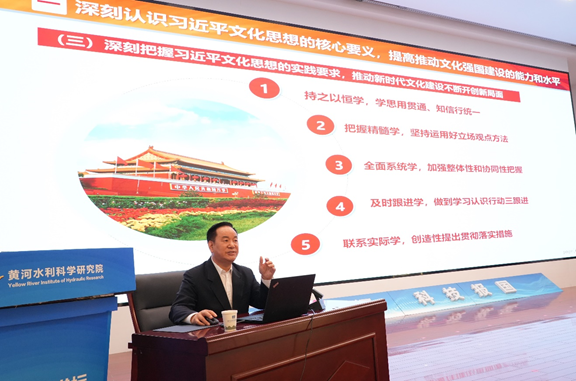 4月17日,黄河水利科学研究院举行文化知识培训讲座,邀请水利部离退休干部局原局长、中国水利文协副主席兼数字文艺分会主席、水利部政策研究项目水文化专家凌先有做专题讲座。